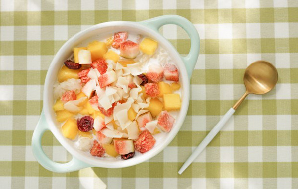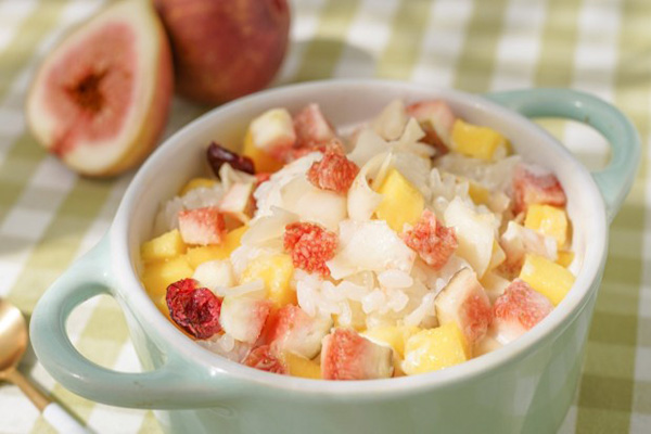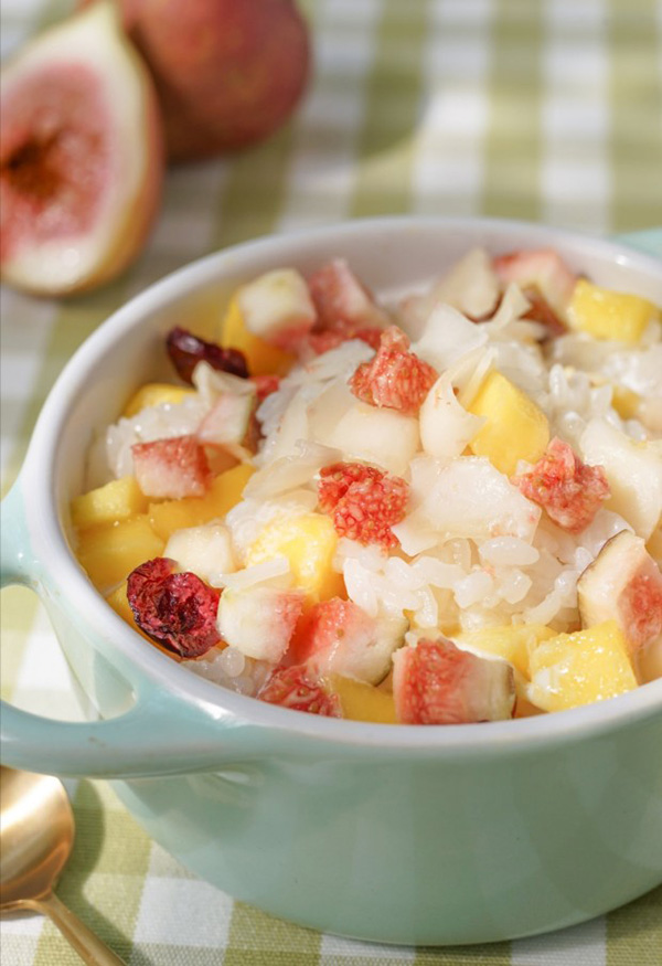 教各人做升级版的水果糯米饭,,,,,吸饱了纯椰浆的糯米饭,,,,,软糯又嚼劲,,,,,再配上堪比新鲜水果的水果干,,,,,清新N倍!一点都不腻!